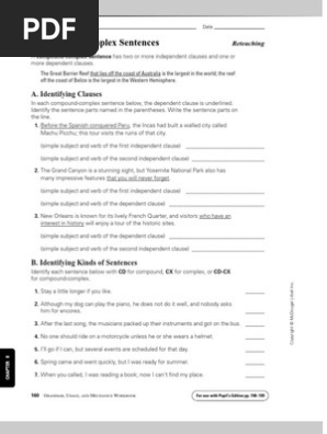 Simple Compound Complex Sentences Worksheets With Answers Yahoo