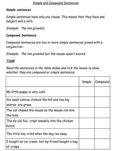 Simple Sentence And Compound Sentence Worksheet Printable