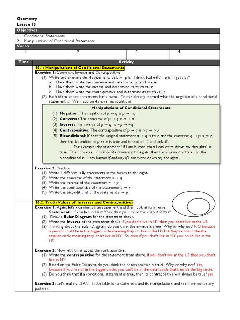 Geometry Lesson 10 V2 Converse Inverse Contra Positive And