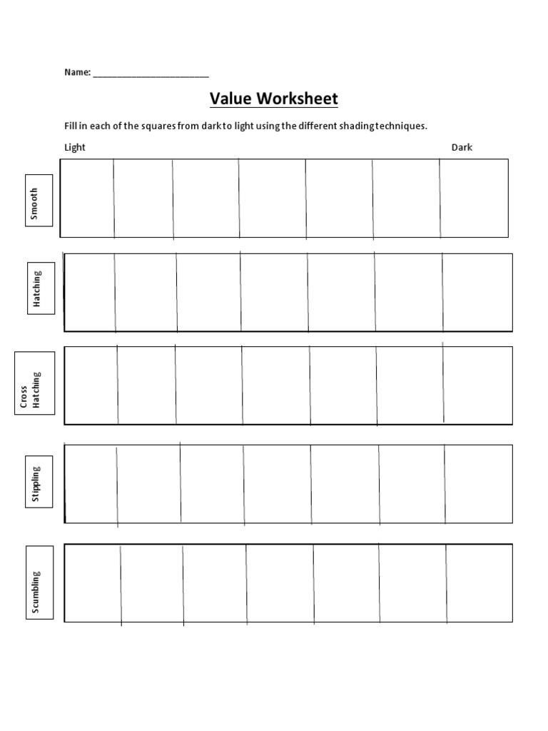 Value With Line Hatching And Cross Hatching Lesson Plan And Worksheet