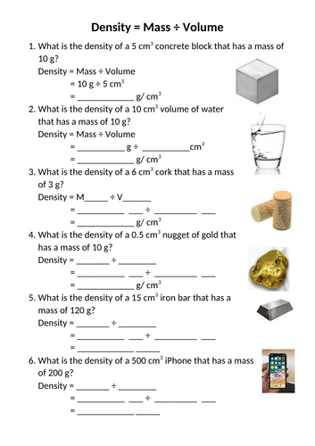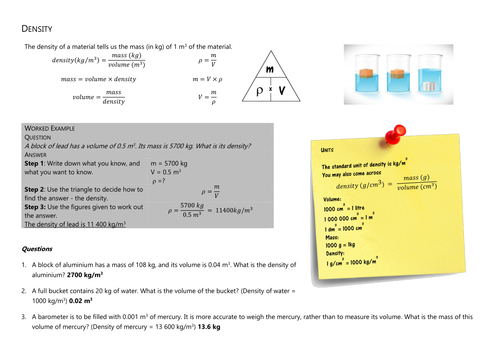 Density Worksheet Ks3 Scaffolded Teaching Resources