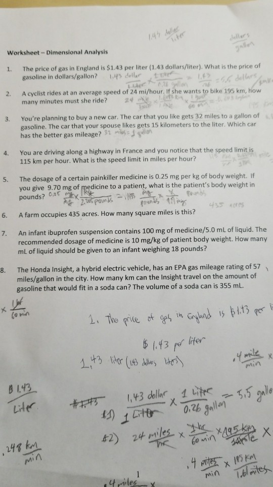 Solved Worksheet Dimensional Analysis 1 The Price Of Gas