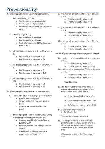 Gcse Maths Direct Proportion Worksheet Teaching Resources