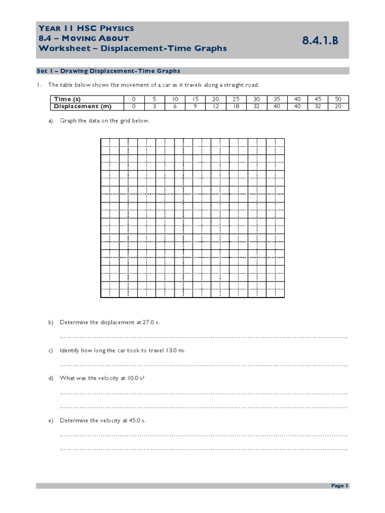 Displacement Time Graph Worksheets Teaching Resources Tpt