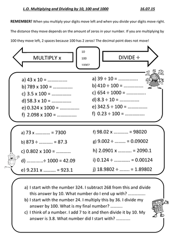 Multiply And Divide By 10 100 And 1000 Teaching Resources