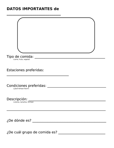 Food Facts Worksheet In Spanish La Comida Teaching Resources