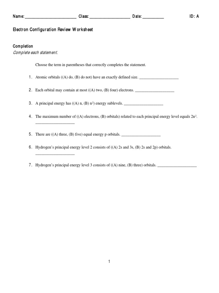 Electron Configuration Worksheet 1 Printable Worksheets And