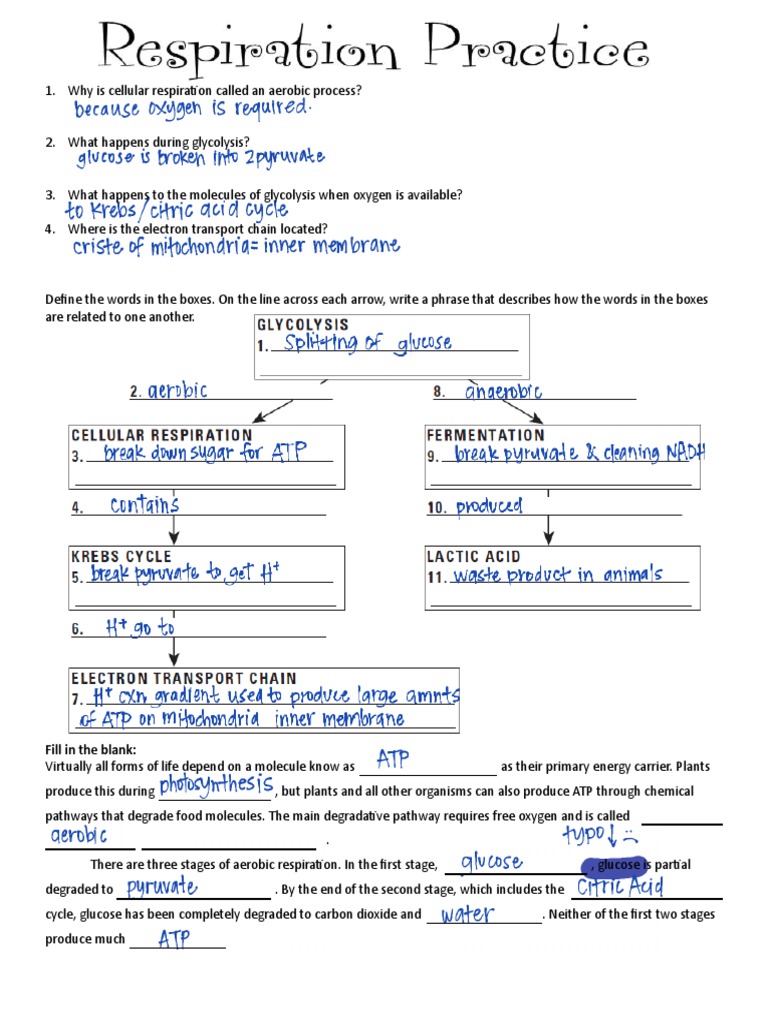 Worksheet Answer Key Cellular Respiration Worksheet Answers Biology
