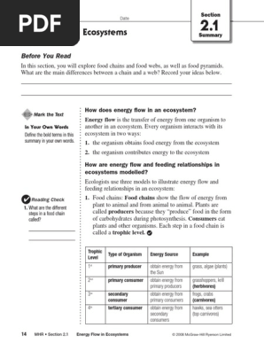Energy Flow In Ecosystems Guiding Questions Worksheet
